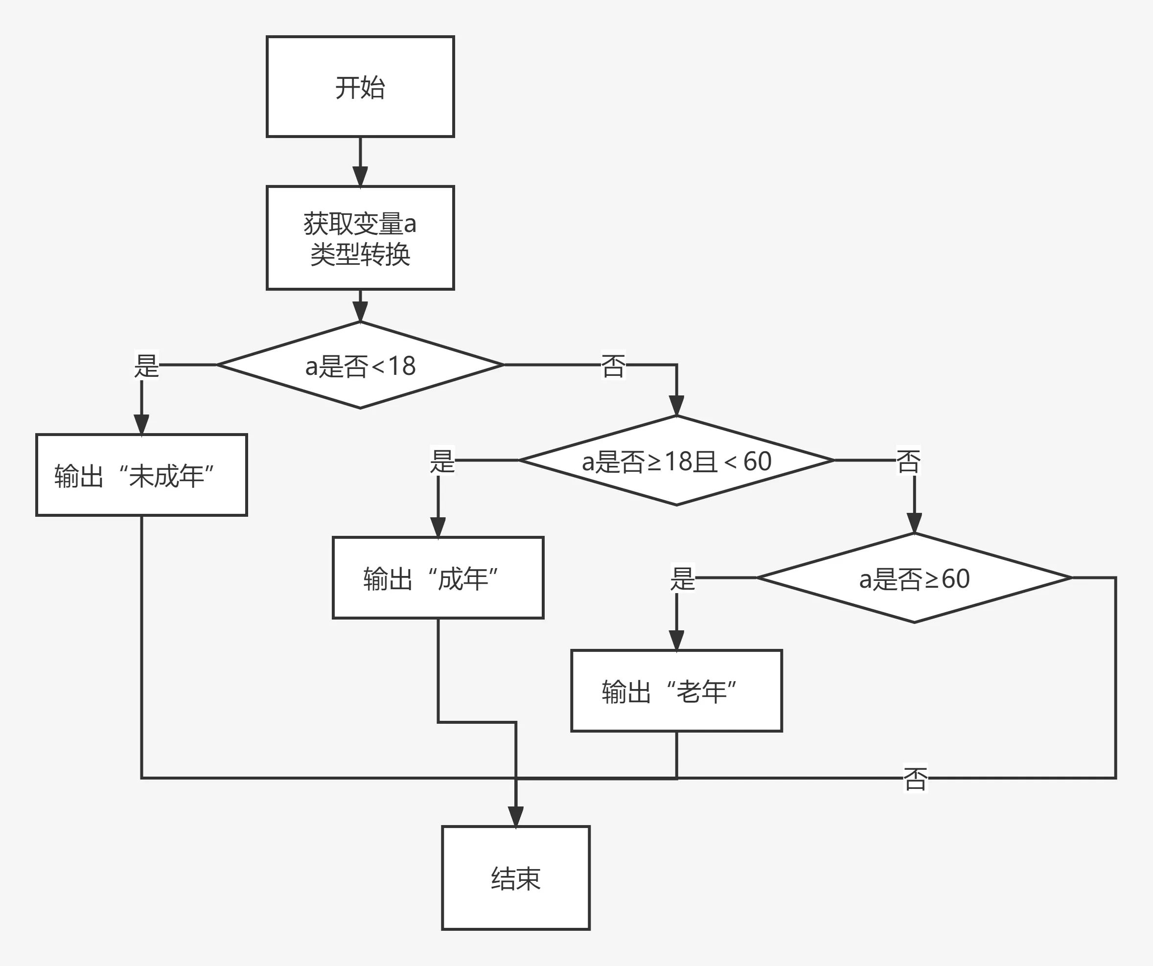 输入一个人的年龄,判断他是未成年(<18)、成年(≥18且<60)还是老年(≥60)?