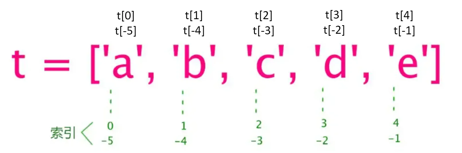 这就是最简单的索引,现在在这个的基础上,我们再介绍一个负数索引。